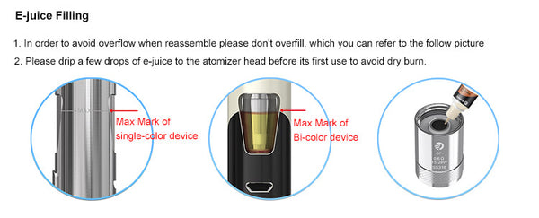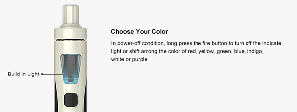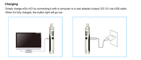 eGo AIO, being all-in-one style, attaches the best anti-leaking structure with 2ml e-juice capacity. It applies childproof systems: pressure twist cap of tank and five-click fire button of power supply. It is simple and convenient in use, but fashionable in look of several mixed colors and indicator light of seven colors. Its simplicity and efficiency make the device quite popular and unique.