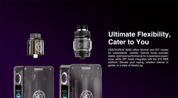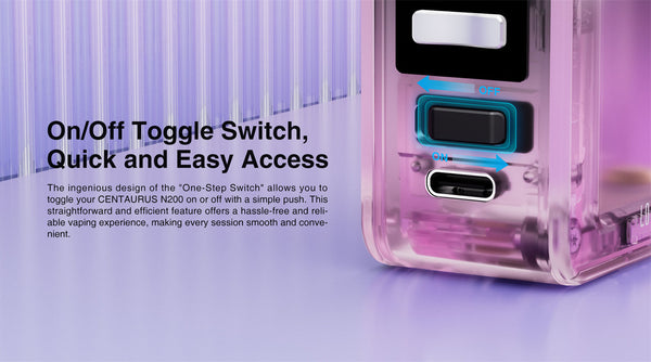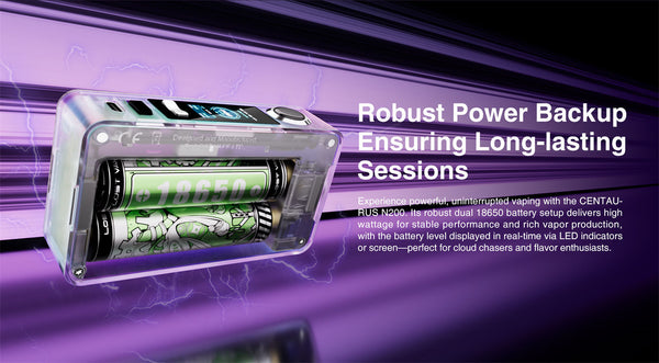 The Lostvape CENTAURUS N200 Kit. Featuring an unlimited combination of transparent matte shells , it blends style and functionality perfectly . Its powerful 200W max output and clear 0.96 TFT display allow easy monitoring and adjustments . Boosted by dual 18650 batteries , it guarantees long-lasting performance . Moreover , the on / off toggle switch and multifunctional button offer intuitive control for an effortlessly smooth vaping experience.