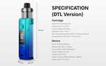 PnP X Cartridge DTL and the compatible coil resistance is 0.2ohm and 0.3ohm. The standard coils are PnP X 0.2ohm and PnP X 0.3ohm. It is recommended to choose the e-liquid with 50%-70% VG and whose nicotine content of no more than 35 mg. For the DRAG S2 MTL version (Only For Italy, France and Germany), the standard cartridge is PnP X Cartridge MTL with PnP X 510 DTL Drip Tip(Pre-installed) and PnP X 510 MTL Drip Tip(Replaceable) ( the wider one for DTL, the narrower and longer one for MTL and RDL) and the compatible resistance is 0.3ohm and 0.6ohm. The standard coils are PnP X 0.3ohm / PnP X 0.6ohm. It is recommended to choose the e-liquid with 50% VG and whose nicotine content of no more than 35 mg.