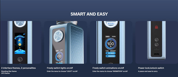 Create a unique atmosphere with different starlight animations and UI themes. Not just another box mod. It's a show maker.
