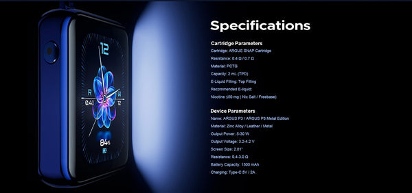 Compatible Cartridge: ARGUS Snap Cartridge (0.4ohm / 0.7ohm / 1.0ohm) & Argus Cartridge & ARGUS Top Filling Cartridge V2