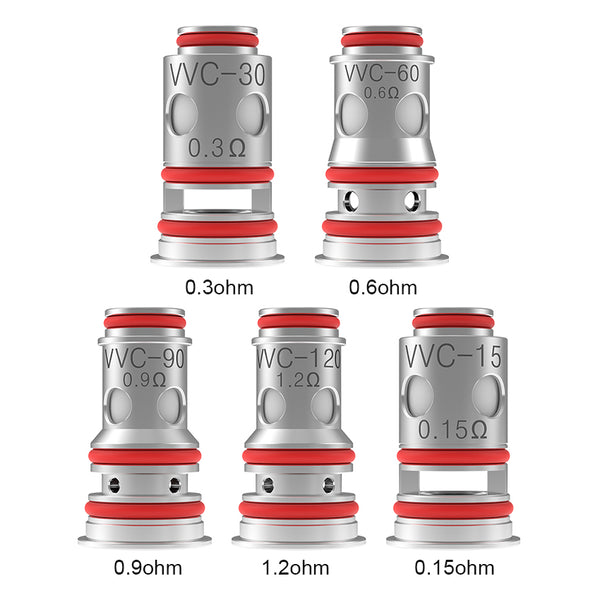 Coil Resistance: 0.3ohm(30-45W; VVC-30), 0.6ohm(18-26W; VVC-60), 0.9ohm(9-16W; VVC90), 0.15ohm(35-60W; VVC15),1.2ohm(7-13W; VVC120)